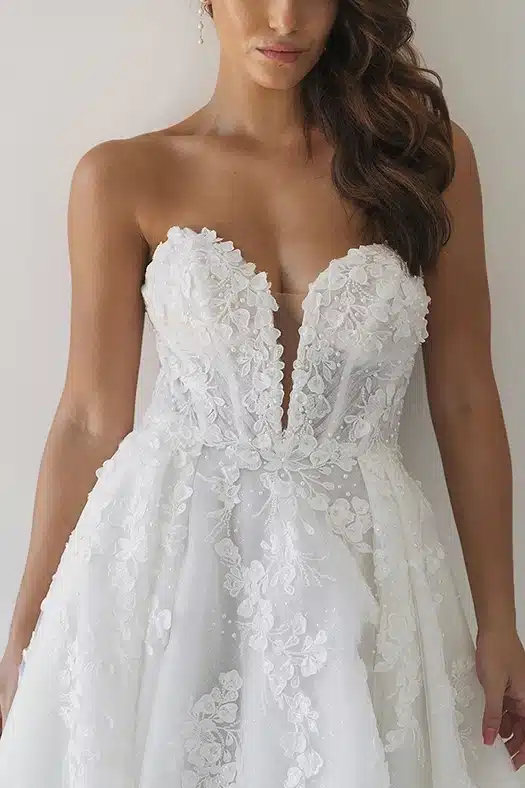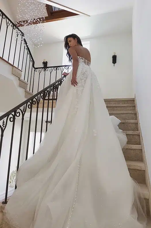 * Es handelt sich hierbei um die Größe unserer Musterkleider. Neubestellungen erfolgen in der Größe deiner Wahl. Bitte beachte zudem, dass einige Brautkleider internationaler Designer kleiner als die üblichen Konfektionsgrößen ausfallen.